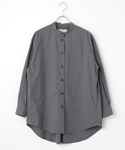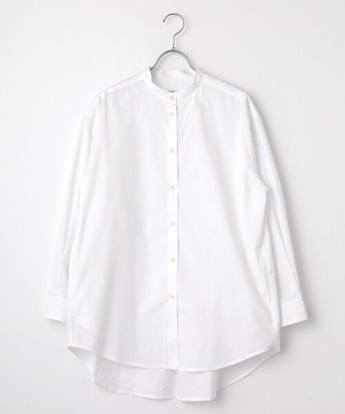 オーバーサイズなリラックスシルエット、羽織ジャケットととしてもお使い頂けるよう、両サイドにポケットを付けてあります。スッとミニマムに仕上げ、シーンを選ばずの定番として着て頂ける一枚です。ポリエステルマイクロファイバー/ピマコットン混紡糸、タイプライターとブロードの中間で適度なハリコシを演出しています。天然繊維に近いタッチに、ポリエステル特有の速乾性、シワ軽減、軽量感などの特徴が加わった素材です。