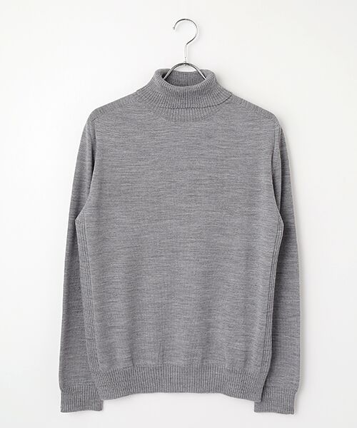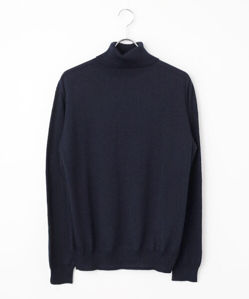 タートルネック 2/46 2PLY 12ゲージ天竺。オーストラリア産エクストラファインメリノウール。防縮加工糸。厳選された素材ならではの発色性の良さと光沢を持ち、上質で高級感のある仕上がり。 タートルネック。身頃脇2?2リブ。ホールガーメント(シームレス)による快適な着心地。