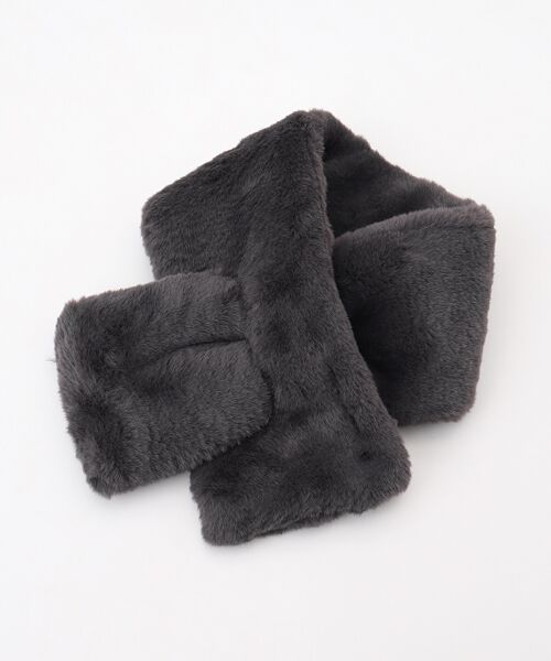 エコファーを使用したショートマフラー。コンパクトなサイズでコーディネートにワンポイントプラスできるアイテム