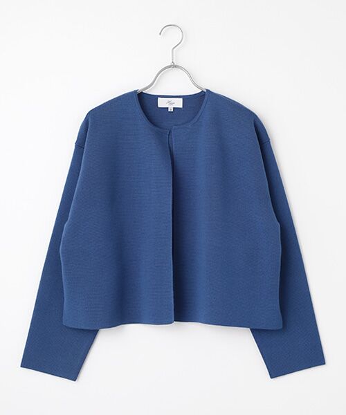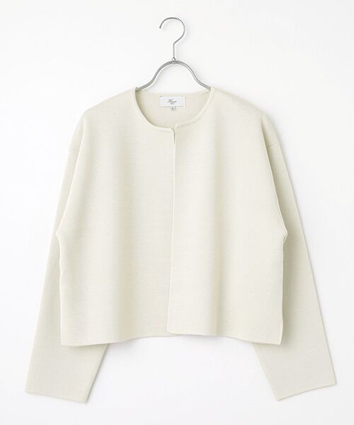 ミラノリブのしっかりとした編地とコンパクトなラウンドネックで、ジャケットのような感覚で羽織れるニットカーディガン。程よいゆとりのサイズ感で、シャツブラウスに重ねやすく、きちんと感とリラックス感の両方を感じられます。ソフトな肌触りと綺麗目な表情が特徴。ピリングしにくいアクリル混で、軽やかさと暖かさを兼ね備えたニット。