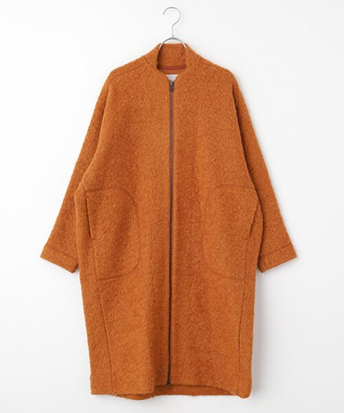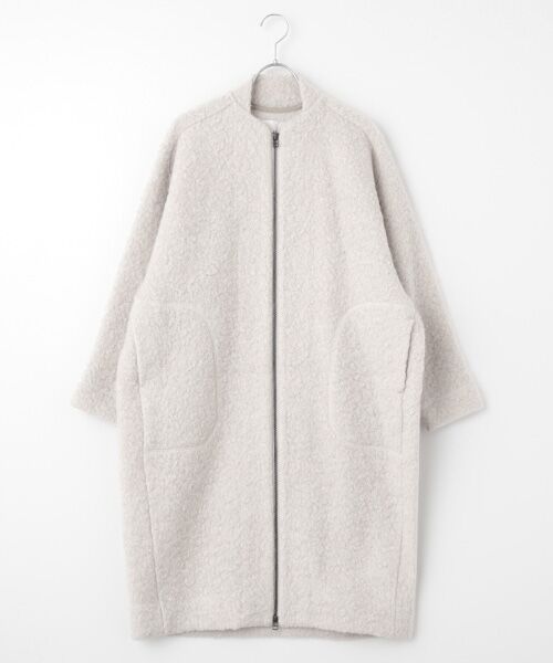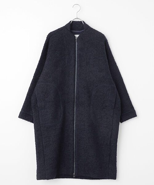 ループインレー圧縮ニットを使用したニットコート。インレーニットは生地にふくらみを持たせ保温性を向上させたニットです。柔らかな生地感と保温性で長く着用頂けるコートに仕上げました
