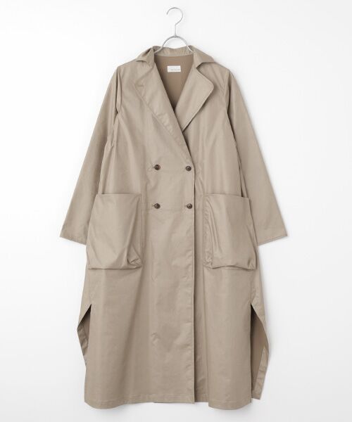 撥水加工が施されたローブコート。裏地がなくしなやかで、さっと羽織ることができます。シワが付きにくい形状保持加工や、イージーケアも嬉しいポイント。長すぎずの丈感に両サイドとバックには深めのスリット入り。小さな襟や大きく立体的なポケットはラプレらしいデザインです。素材について:高密度で織り込んだツイル素材に形状保持性を持たせるBJ加工と 撥水、ストレッチ性を加えました。ビンテージ調の見え方と肌触りが特徴的な素材です。