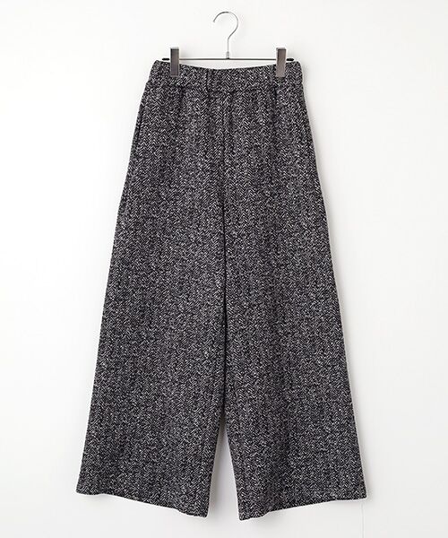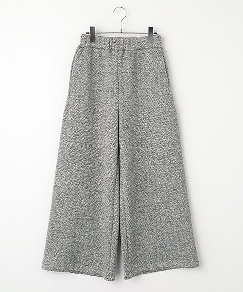 トラックジャケットとセットアップ可能なパンツです。ジャージー素材には珍しいワイドシルエットはセーラーパンツを彷彿とさせます。脇接ぎをなくすことですっきりと柔らかいシルエットになっています。ジャージをベースにツイード風のヘリンボーンをプリントした素材です。基布に使っているスラブ糸や杢糸とツイード長の柄が組み合わさることで奥行きある見え掛となっています。裏起毛しているため肌触りが良く膨らみある軽い仕上がりとなっています。