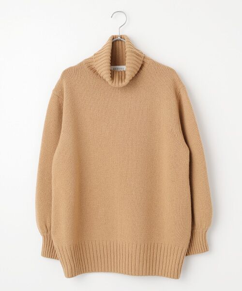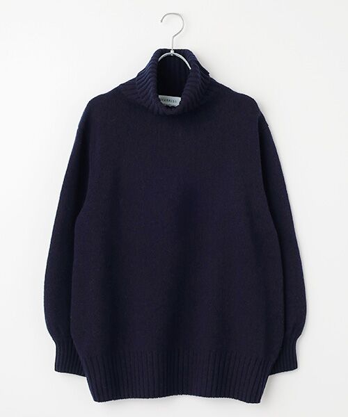 とてもシンプル、着丈も長くゆとりあるシルエット、故に色々と合わせのきく一枚です。ボトムはスリムタイプパンツやボリュームスカートにも相性よく、楽しんで頂けます。クラッシックタイプのウール紡毛糸は、温かみのある表情とソフトな手触りが特徴。代表的なニット素材です