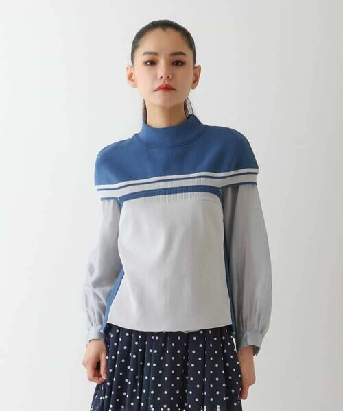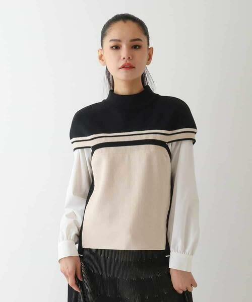 片畦編みの独特な風合いを活かした配色切り替えがポイント。胸元からアームホールに繋がるリブラインのカットホールが洒落感のあるデザインです。さりげない段差の前後差ヘムでボトムとのバランスも良く、コンパクトに魅せてスタイルアップを後押し。フェミニンなスカートからカジュアルパンツまで幅広く合わせて頂けるアイテムです。同素材のプルオーバー【RBFDA10290】もおすすめ。