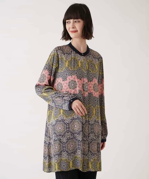 ヴィンテージ感のある総柄プリントが大人エレガントなチュニック丈ブラウス