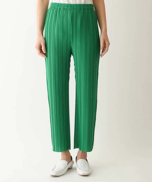 無縫製ニットにプリーツ加工を施し、左右のパーツを組みわせる手間ひまかけた仕上げた特別感のあるひと品。総ゴムウエストに伸縮性に富んだリラクシーなフィット感も嬉しいポイント。差しアイテムとしてはもちろん、同素材のチュニック【RBKFB34290】、カーディガン【RBKFB33330】と合わせたスタイリッシュな着こなしもおすすめです。