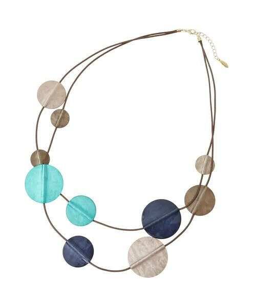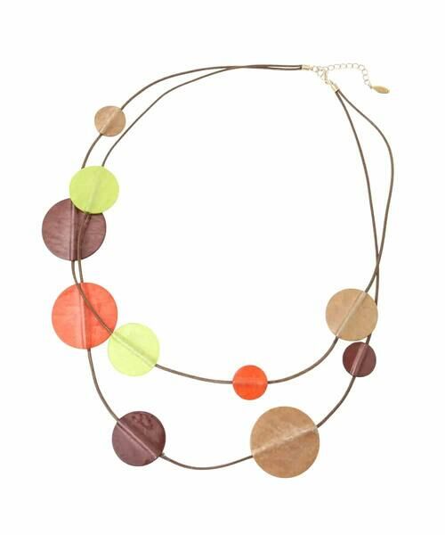 大きさやカラーの異なるサークルモチーフをデザインした存在感たっぷりの二連ネックレス。シンプルなファッションに映えるオレンジ、イエロー、ブラウンを取り入れた明るい色使いが魅力のひと品です。縦のラインを強調するロングタイプでカジュアルになりすぎず、上品に演出。デイリーにはもちろん、お出かけシーンまで幅広く楽しんで頂けます。※アクセサリーパーツ・部品などの金属部分に鉛が含まれている場合があります。小さなお子様が口に入れたり誤って飲み込んだりしないように、使用や保管の際は厳重にご注意ください。