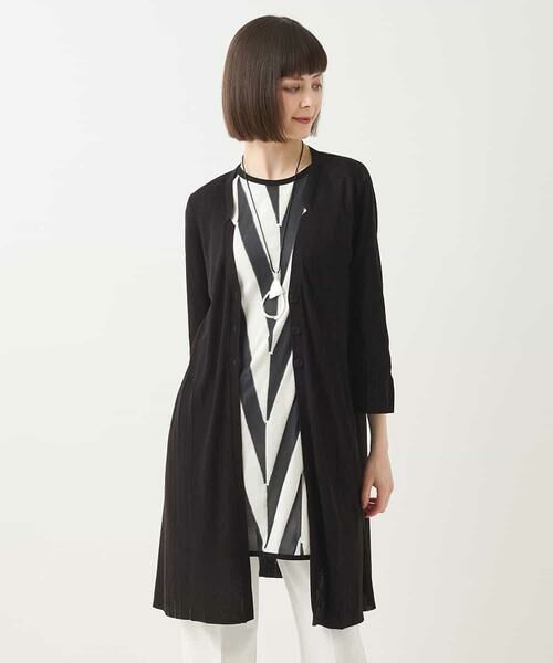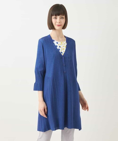 ロングシーズン楽しめるシンプルなカーディガンは、ボトムを選ばず、万能アイテム。前を開けてTシャツやブラウスの羽織りとしてももちろん、閉めてチュニックのように着ても着映えるカーディガンです。