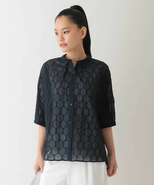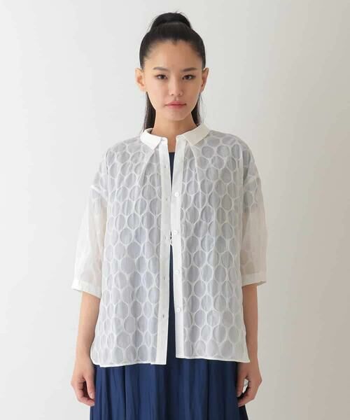 HIROKO BIS / ヒロコビス シャツ・ブラウス | ドットシアーショートスリーブシャツ /洗える(ホワイト)