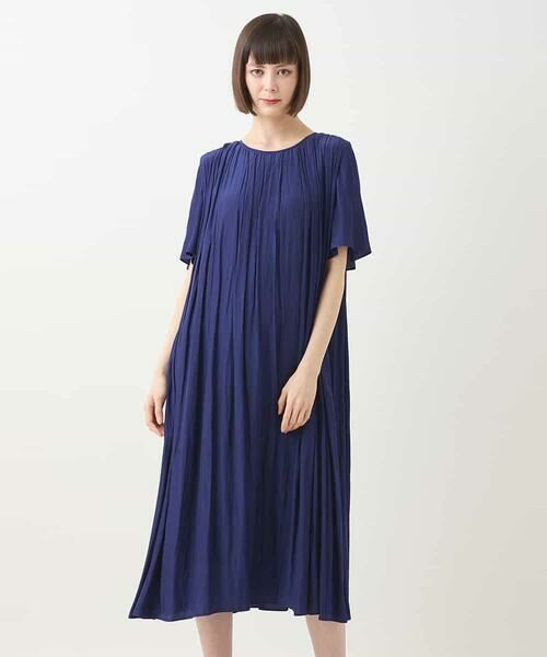 マイルドな光沢感のデシン素材を使用し、歩くたびにエレガントに揺れるふんわりドレープシルエットがエレガントなひと品。艶めくグログランベルト付きでウエストマークしたスタイルアレンジもお楽しみ頂けます。華やぐ半袖フレアスリーブが涼し気な印象に。一枚で洒落感溢れる大人のきれいめスタイルが完成するおすすめの主役級アイテムです。※バックボタン、インナードレス付き