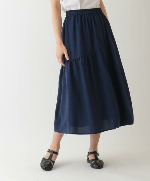 優しい曲線のティアードとふっくらと立体感のあるバルーンヘム、二つのデザインをMIXしたアシンメトリーなデザインが特徴。好きな角度を前にして合わせられる着回し力に優れたオリジナリティあるお作りです。リネンライクなテキスタイルでフェミニン過ぎずカジュアルなムードで品良く演出。ワンツーコーデの強い味方になるおすすめのアイテムです。同素材のパンツ【RBLHA51230】もございます。