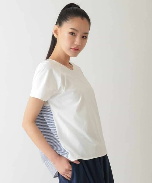 清涼感のあるストライプ生地をジョイントした爽やかなカットソー