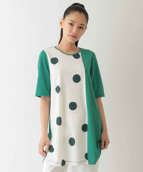 アーティスティックな柄が目を惹く大人カジュアルなカットチュニック