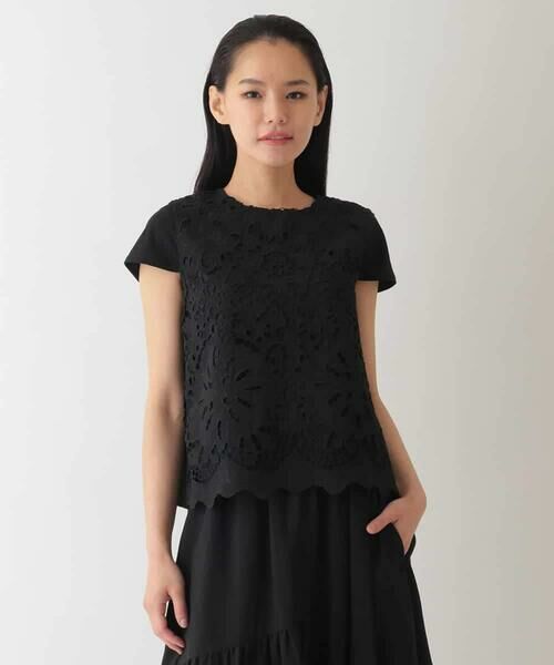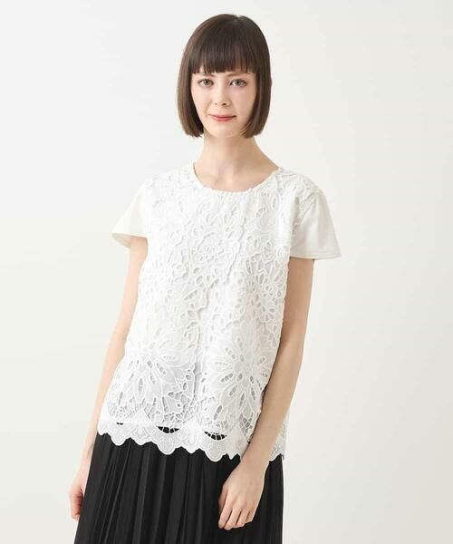 存在感のあるフラワーレースがエレガントに映えるプルオーバーブラウス