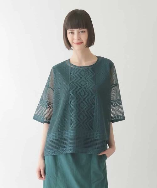 繊細なモチーフメッシュがオリジナリティあるデザインカットソー