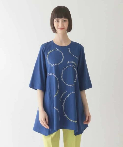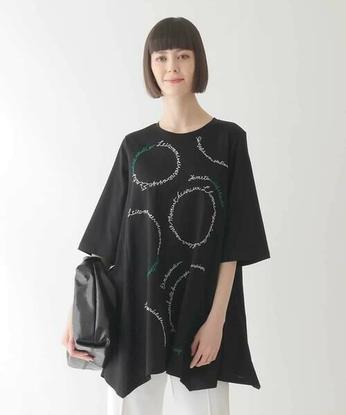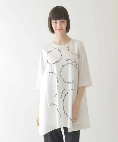 サークル刺繍のハッピーなメッセージがポイントのチュニックカットソー