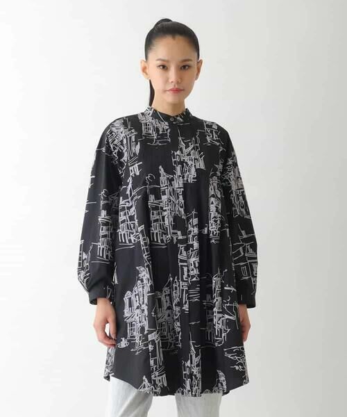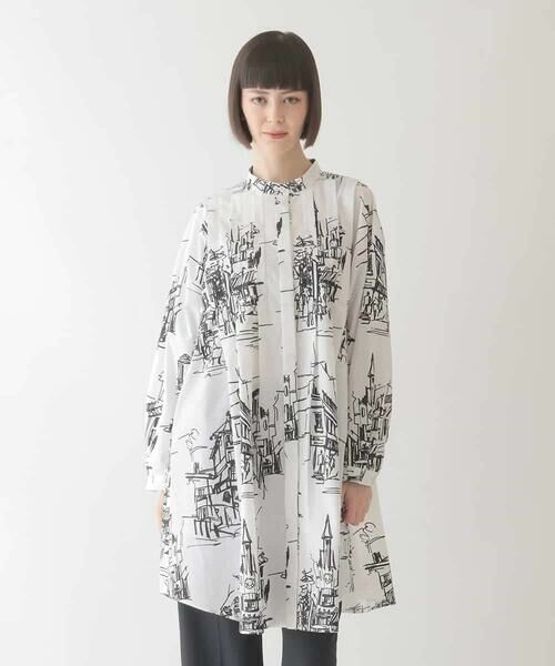 HIROKO BIS / ヒロコビス シャツ・ブラウス | アートプリントタックデザインブラウス /洗える(ホワイト)