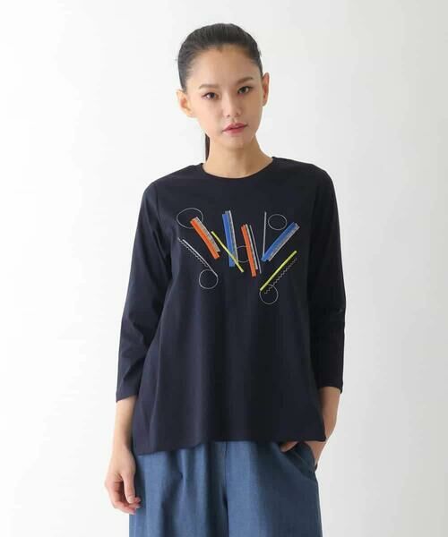 HIROKO BIS / ヒロコビス カットソー | クラフト刺繍デザインカットソー /洗える(ネイビー)