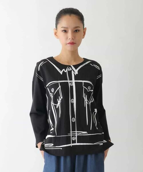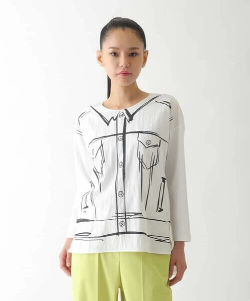ウィットの効いたGジャンプリントがキュートでオリジナリティある一枚。表情のあるドレープツイル素材にカットソー生地をドッキングしたリラクシーな着心地も魅力です。