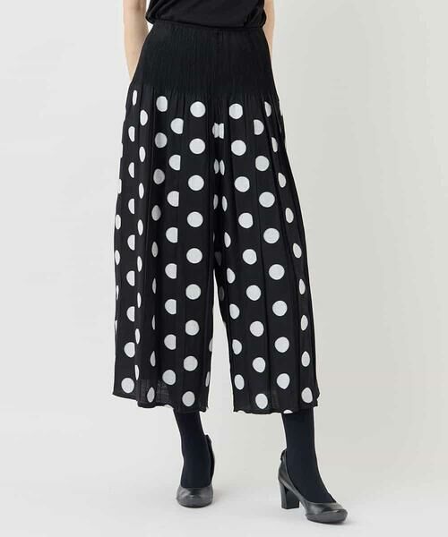 ウエストにたっぷりと施したシャーリングでゆとりのあるリラクシーな着心地が魅力です。裾に向かって広がるプリーツのような立体感が身体のラインを拾わずきれいなシルエットを演出。