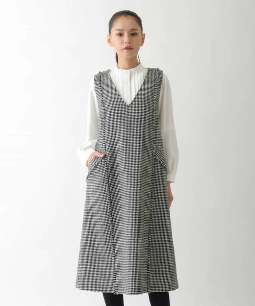 幅広いコーディネートが楽しめる千鳥柄ジャンパースカート