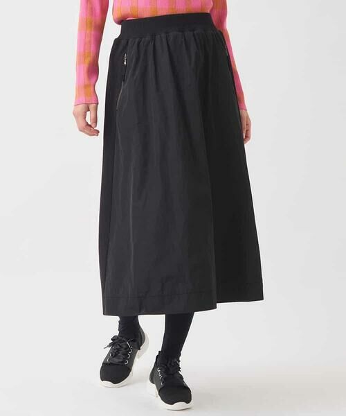 光沢のあるタフタ素材にニットを組み合わせたコントラストが魅力のひと品。ふんわりしたシルエットをサイドのニットアクセントがスタイリッシュに引き締めます。程よい存在感のあるポケットは、ファスナー付きで機能性も抜群。ウエストゴム仕様で使い勝手も良く、デイリーにはもちろん特別な日にも穿きたくなるおすすめのアイテムです。