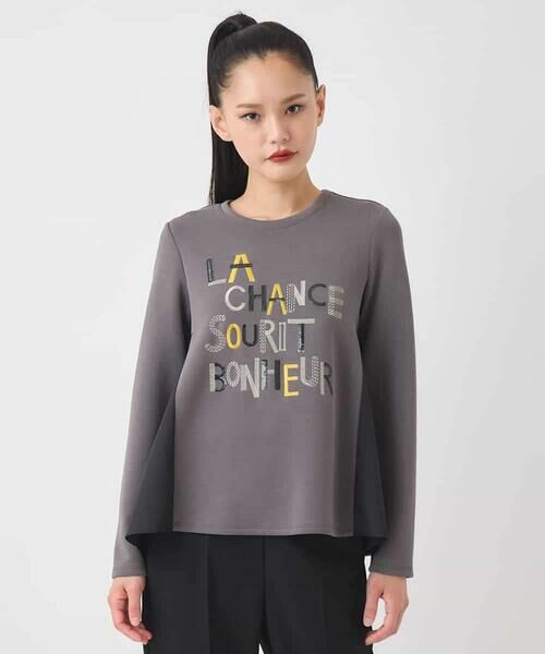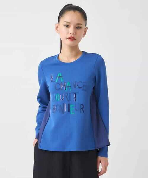 POPなグラフィティ文字にスパンコールと刺繍で立体感をプラスしたリッチ&カジュアルな一枚。サイドにハリのある布帛タフタ素材をジョイントし、メリハリのあるふんわりフォルムが旬な着こなしを演出します。ボトムを選ばず使い勝手の良いデザインはデイリーユースに最適。