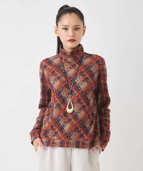 HIROKO BIS / ヒロコビス カットソー | チェックパイルジャカードプルオーバー(ブラウン)