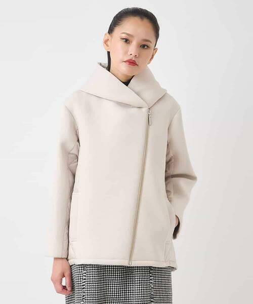 コンパクトな丈感はスタイルアップ効果も期待でき、幅広いボトムと相性が良いのが魅力。大きなフードとアシンメトリーな前開きでどんなスタイルにも着合わせしやすい一枚です。