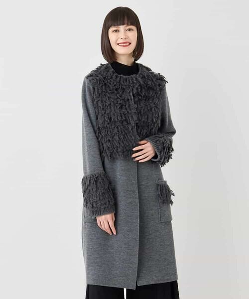 表情感のあるフリンジディテールが存在感を上げるシーズナルな一着。ベースはハイゲージのスムースな表面でよりコントラストを効かせつつ、すっきり見えも叶えます。胸元部分のみ留めホックで着脱もしやすく、季節をつなぐブリッジアウターとして普段使い頂けるおすすめのアイテムです。