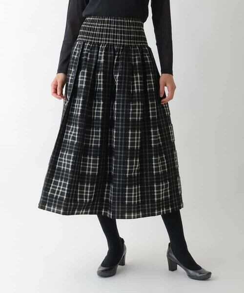 大胆なチェック柄をジャカードで仕上げたオリジナリティあるデザイン。ウエストにたっぷりとギャザーを施したヒロコビスらしいディテールと特別感あるテキスタイルが魅力的に映えるひと品です。程よくハリのある生地でふんわりとしたシルエットをキープし、軽い穿き心地なのも嬉しいポイント。カジュアルテイストからニット合わせのエッジの効いたスタイリングまで幅広く活躍してくれるアイテムです。