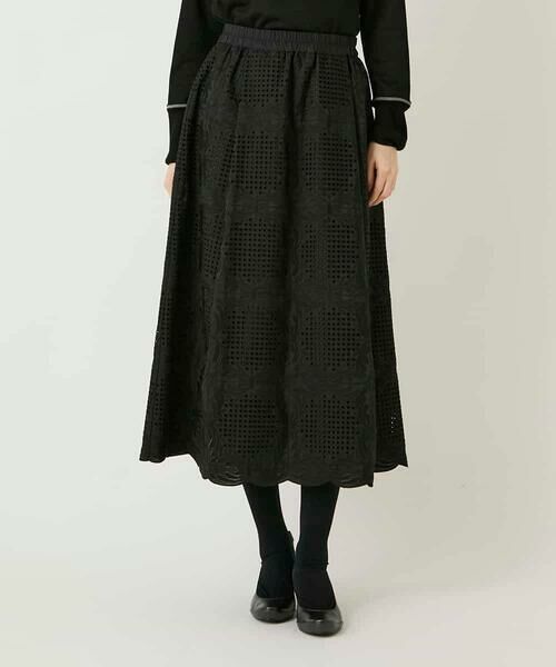 HIROKO BIS / ヒロコビス ロング・マキシ丈スカート | モチーフレースデザインスカート /洗える(ブラック)