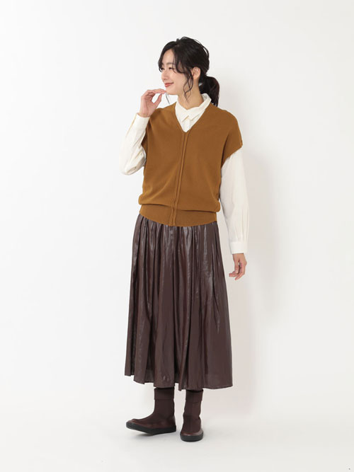 ゆったりフォルムが今を感じさせるニットプルオーバー。裾に向かって細身にすることで、合わせるボトムを選ばず、脚長効果も期待できる一枚です。また、前中心の切り替えを入れてすっきりとした印象に。後ろヨークから脇にかけて配したニットテープや前後で編みの方向を変えるなどこだわりのデザインになっています。カットソーやシャツをレイヤーするだけでトレンドのスタイルが完成。