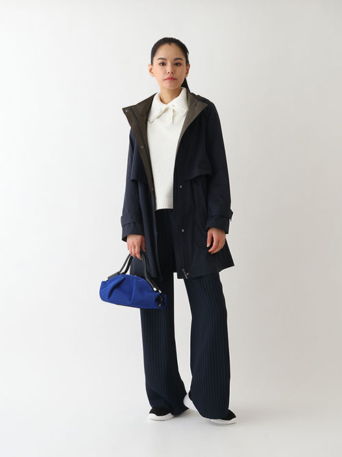 コットンポリエステルの上品で微光沢のあるナチュラルな風合いのテープヤーンを使用。風合いのある優しい表情が軽やかなイメージを演出します。
