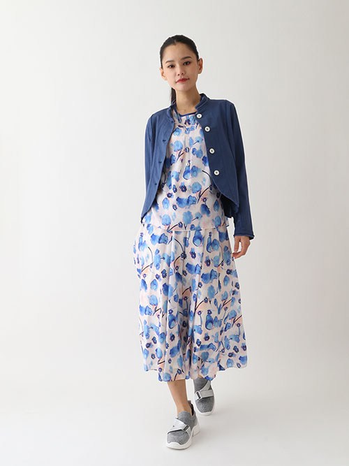 格子状に織り込んで作るリップストップ生地をシルクで表現した贅沢なテキスタイルなのも嬉しいポイントです。胸元や袖にはタックディテールを施してよりふんわりとしたシルエットを演出。ネックラインと袖口の配色パイピングが引き締めのアクセントになっています。同素材のスカート【RBHEV16330】と合わせた春らしいセットアップもおすすめ。ワンピース【RBEEV15450】もございます。※バックボタン