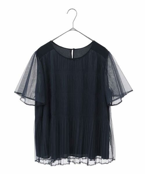 エアリーな揺れ感が大人フェミニンに演出するデザインブラウス◆ デザイン・おすすめポイント ◆トレンドのシアーチュールで仕立た見た目にも涼し気なお仕立て。揺れる表情が素敵な三段の細かなマジョリカプリーツが特別感あるアクセントです。ゆとりある程よい長さの半袖スリーブや着崩れしにくいジョイントインナー付きなのも嬉しいポイント。同素材のスカート【RLQFB32310】と合わせたエレガントなセットアップでより優しい雰囲気に。model:H172 B81 W58 H86 着用サイズ:M◆ 素材 ◆ポリエステル100%のソフトエコチュールを使用。バックボタン仕様で楽に着脱可能です。-----------------------------------透け感 : あり伸縮性 : ややあり光沢感 : ややあり生地の厚さ : 薄手裏地 : あり(裏地)-----------------------------------