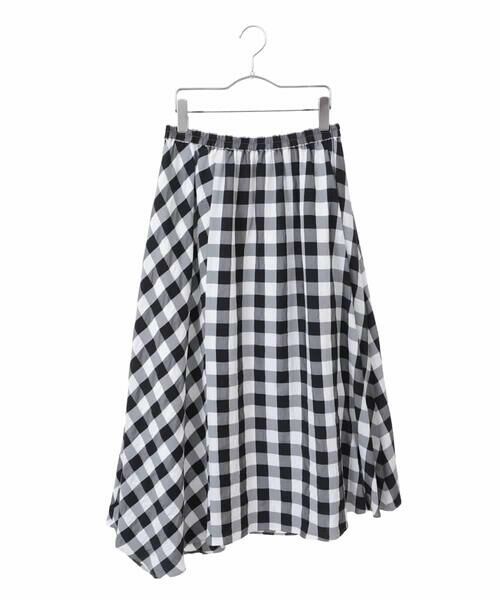 可愛らしさのあるギンガムチェック柄をバイヤス切り替えでクールに仕上げたこだわりのスカート。軽量でエアリーな素材とアシンメトリーにカットしたヘムラインがお洒落な動きを演出します。ウエスト総ゴムのイージーな穿き心地も魅力的なポイント。カジュアルなTシャツからきれい目ブラウスまで幅広く合わせて頂けるアイテムです。