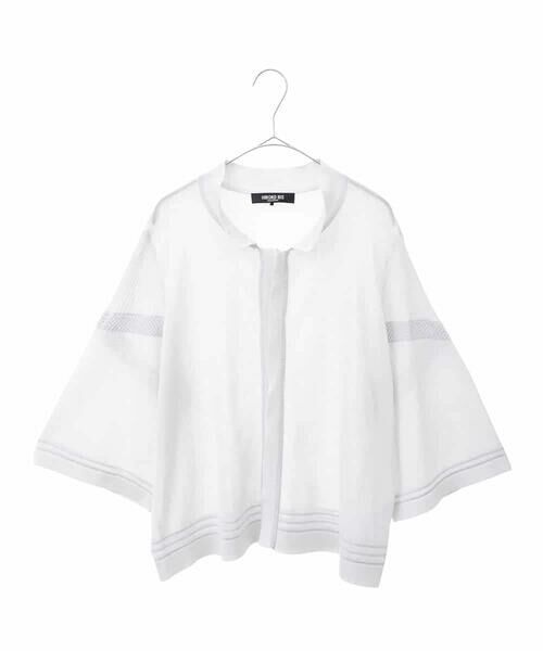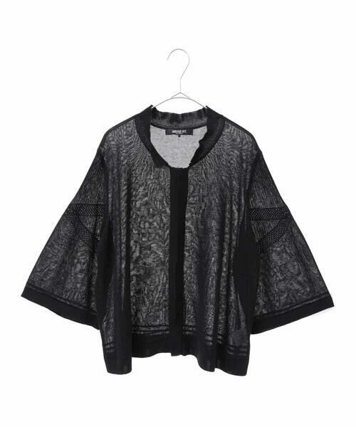 シンプルなシルエットにメッシュデザインをポイントで施したボリュームスリーブが大人の可愛らしさを引き立てます。やや短めの着丈感でボトム合わせしやすいのも魅力のポイント。エレガンスの羽織アイテムとしても、大人カジュアルにも着こなせる汎用性の高いアイテムです。