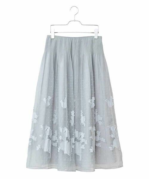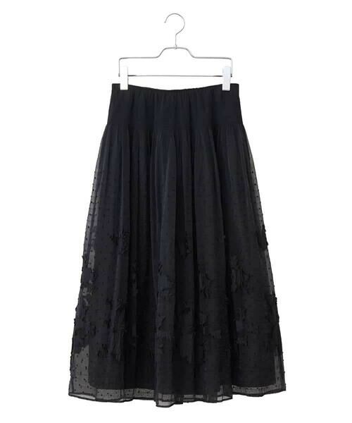 淡いシアーが軽やかに印象付けるエアリーな風合いが魅力的なデザイン。カットディテールの効いたフラワー柄と小付きドットをジャカードで表現した贅沢なお仕立てです。腰回りはシャーリングでフィットさせ、緩やかに広がる優しいフレアが美しいシルエット。同シリーズのブラウス【RLBGA33340】と合わせればお呼ばれの席にもぴったりのセットアップに。※ウエストゴム仕様、裏地付き