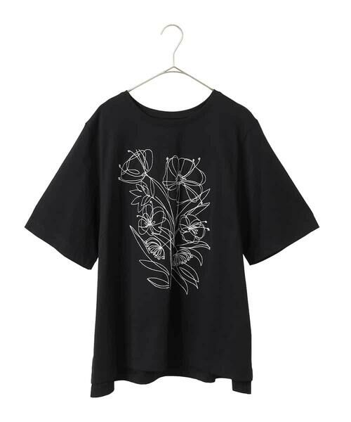 大人カジュアルスタイルを格上げする特別感あるデザインTシャツ◆ デザイン・おすすめポイント ◆上品な肉感と滑らかな手触りが心地よいコットン素材を使用したライトな一枚。ステッチ刺繍で表現したブーケのようなフェミニンな線画モチーフがオリジナリティあるポイントです。サイドスリット入りのほんのり前後差を付けた着合わせしやすいフォルムで様々なシーンで愛用頂けるユースフルなお作りです。チュニックタイプ【RLKGA08210】もおすすめ。br>◆ 素材 ◆コットン100%のシルケット加工を施したツヤ感ある天竺生地。ストレッチ性と爽やかな風合いがシーズンライクなお仕立てです。
