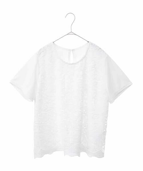 存在感のあるフラワーレースがエレガントに映えるプルオーバーブラウス