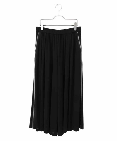 透明糸の配色ラインを施したニットリブ切り替えデザインはモード感のあるスポーティーな印象をプラスします。伸縮性に優れたジャージー素材で着心地良く、サイドポケット付きで実用性も抜群。
