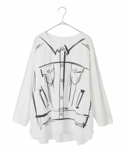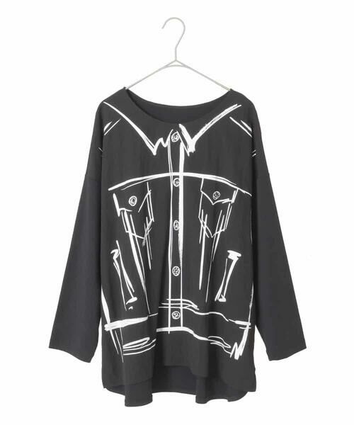 ウィットの効いたGジャンプリントがキュートでオリジナリティある一枚。表情のあるドレープツイル素材にカットソー生地をドッキングしたリラクシーな着心地も魅力です。