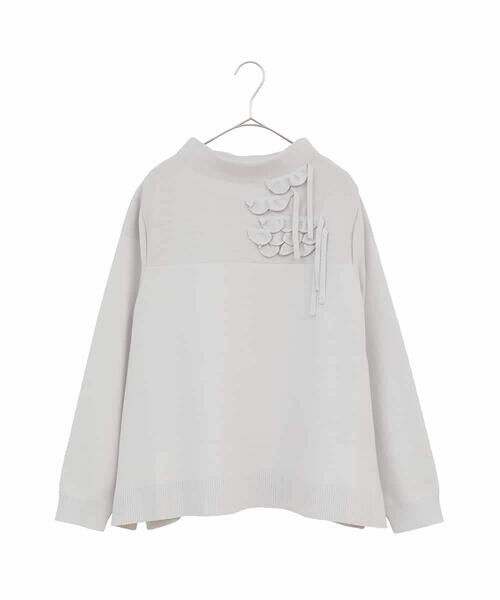 首元にスカラップモチーフをあしらった華やかなデザインが魅力。袖や肩回りは華奢に、裾に向かってほんのり広がるシルエットで腰回りを優しく包み込む女性らしい一着です。テキスタイルはさらりとソフトタッチな肌触りが心地よい、ニットならではの柔らかさ。同素材で仕立てたカーディガン【RLFLB25420】もおすすめ。