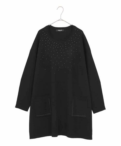 スクエア型の小さいメタルスタッズが華やかに印象付けるニットチュニック