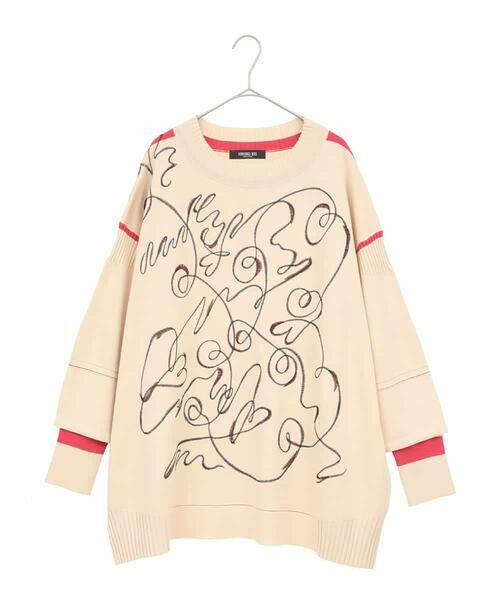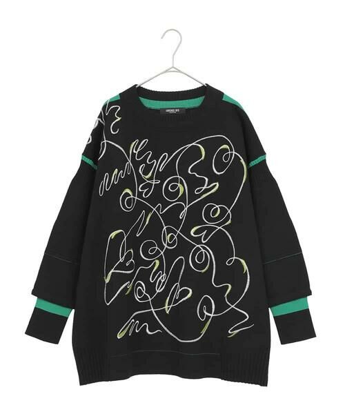 遊び心たっぷりに描かれた曲線刺繍が特別感のある一枚。ベーシックなボディカラーにポイントで色アクセントを効かせ、さらりと一枚で着映えるデザインが魅力です。ふんわりとしたお袖を袖口リブで引き締めたレイヤード風ディテールがお洒落なポイント。やや長めの着丈とゆったりとしたフォルムで着心地が良く、細身のボトムを合わせたメリハリあるスタイリングもおすすめです。