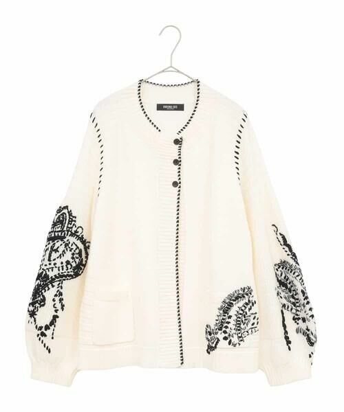 ボリュームのあるハンド刺繍が洒落感溢れるニットカーディガン