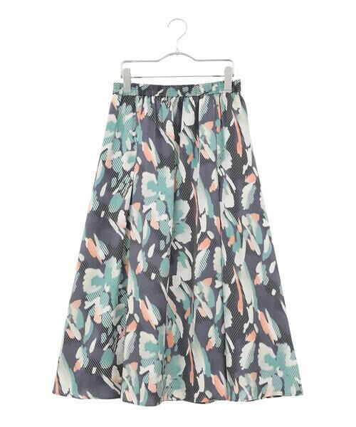 コーラルカラーを効かせたデジタルフラワープリントが華やかなスカート