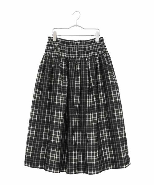 大胆なチェック柄をジャカードで仕上げたオリジナリティあるデザイン。ウエストにたっぷりとギャザーを施したヒロコビスらしいディテールと特別感あるテキスタイルが魅力的に映えるひと品です。程よくハリのある生地でふんわりとしたシルエットをキープし、軽い穿き心地なのも嬉しいポイント。カジュアルテイストからニット合わせのエッジの効いたスタイリングまで幅広く活躍してくれるアイテムです。